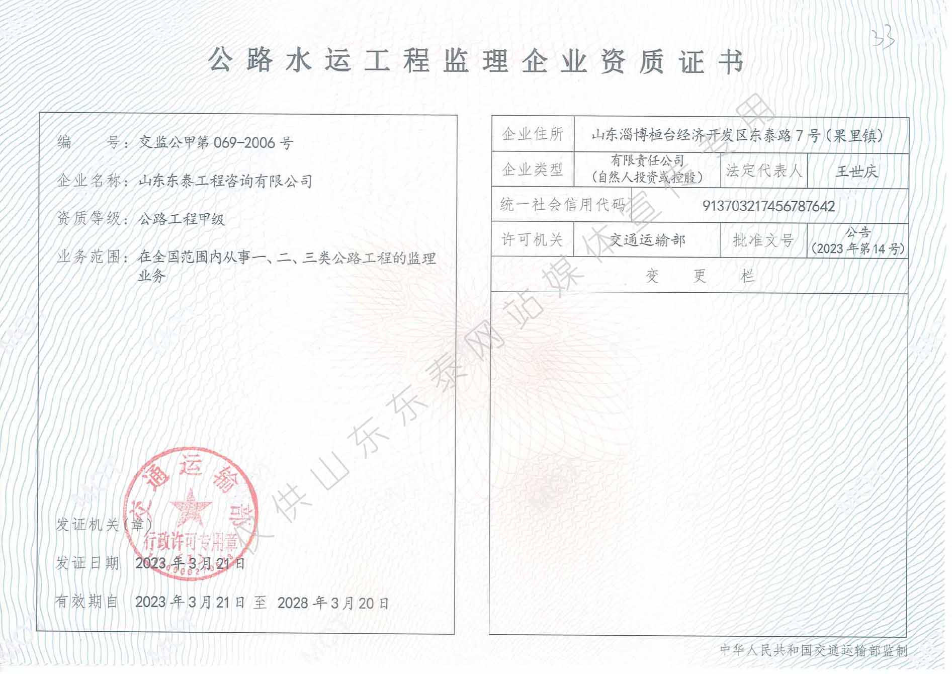 交通運(yùn)輸部公路工程監(jiān)理甲級(jí)