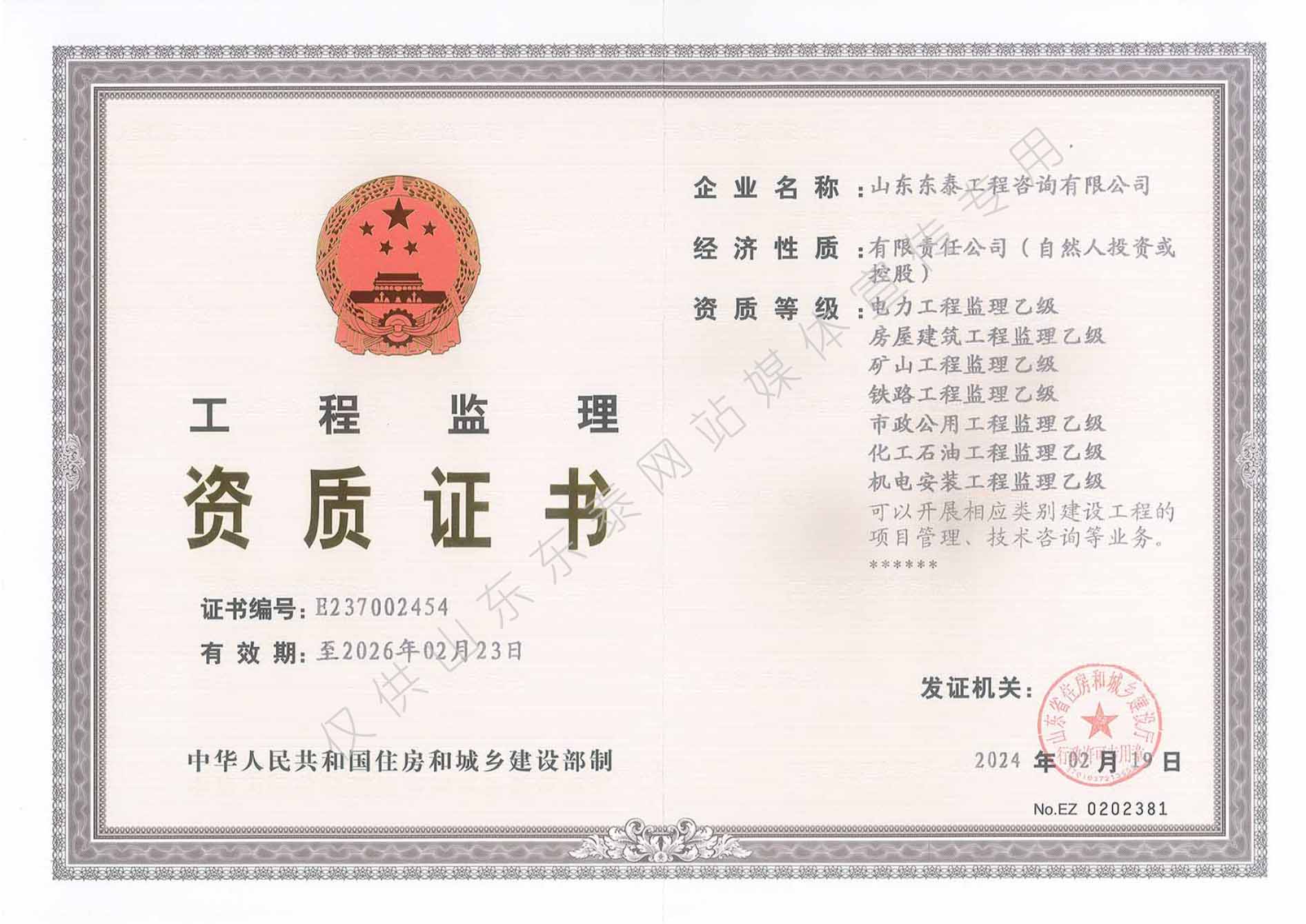 省住建廳監(jiān)理乙級(市政、房建、鐵路、電力、礦山、機(jī)電安裝、化工石油)