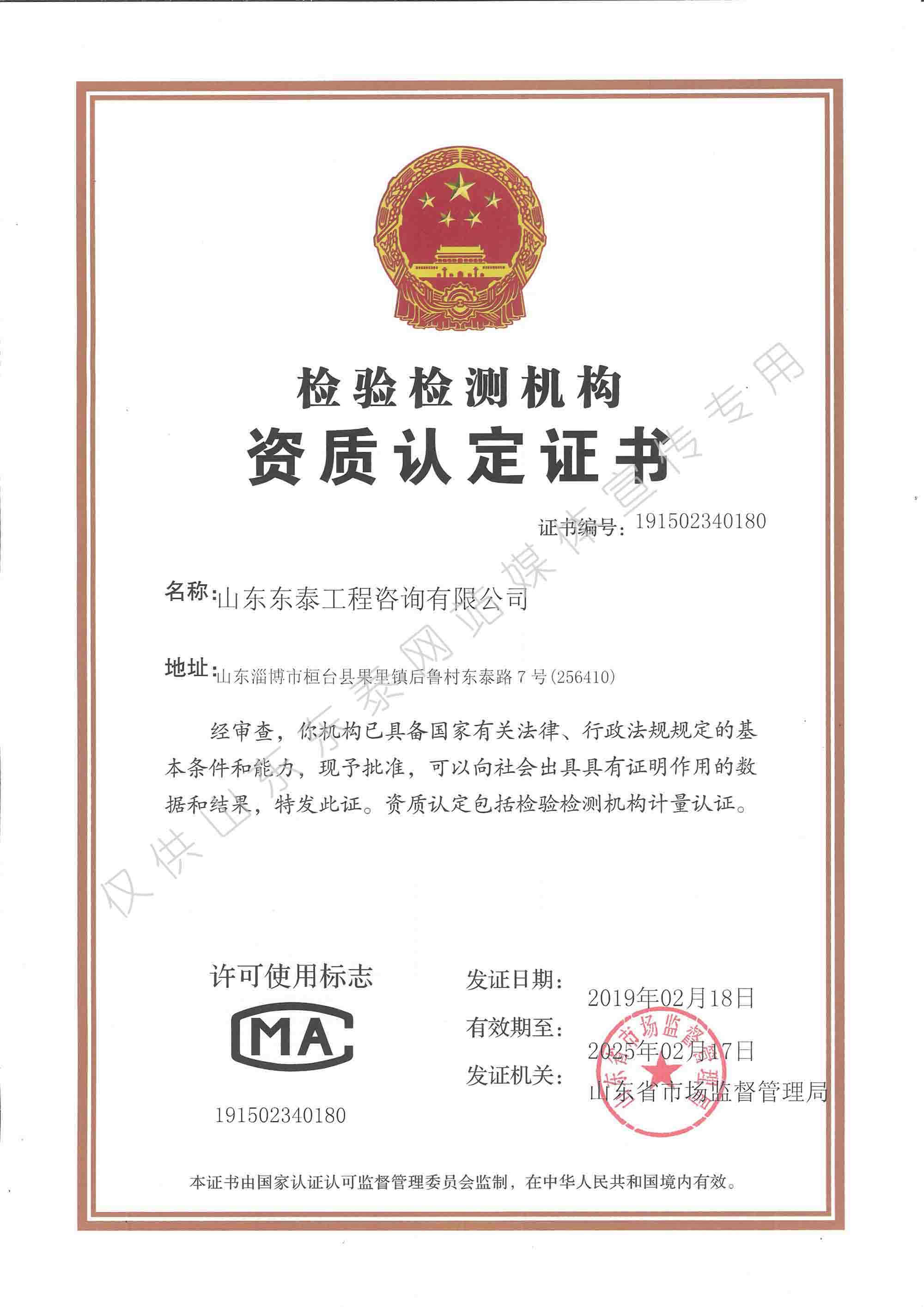 山東省市場(chǎng)監(jiān)管局CMA認(rèn)證證書