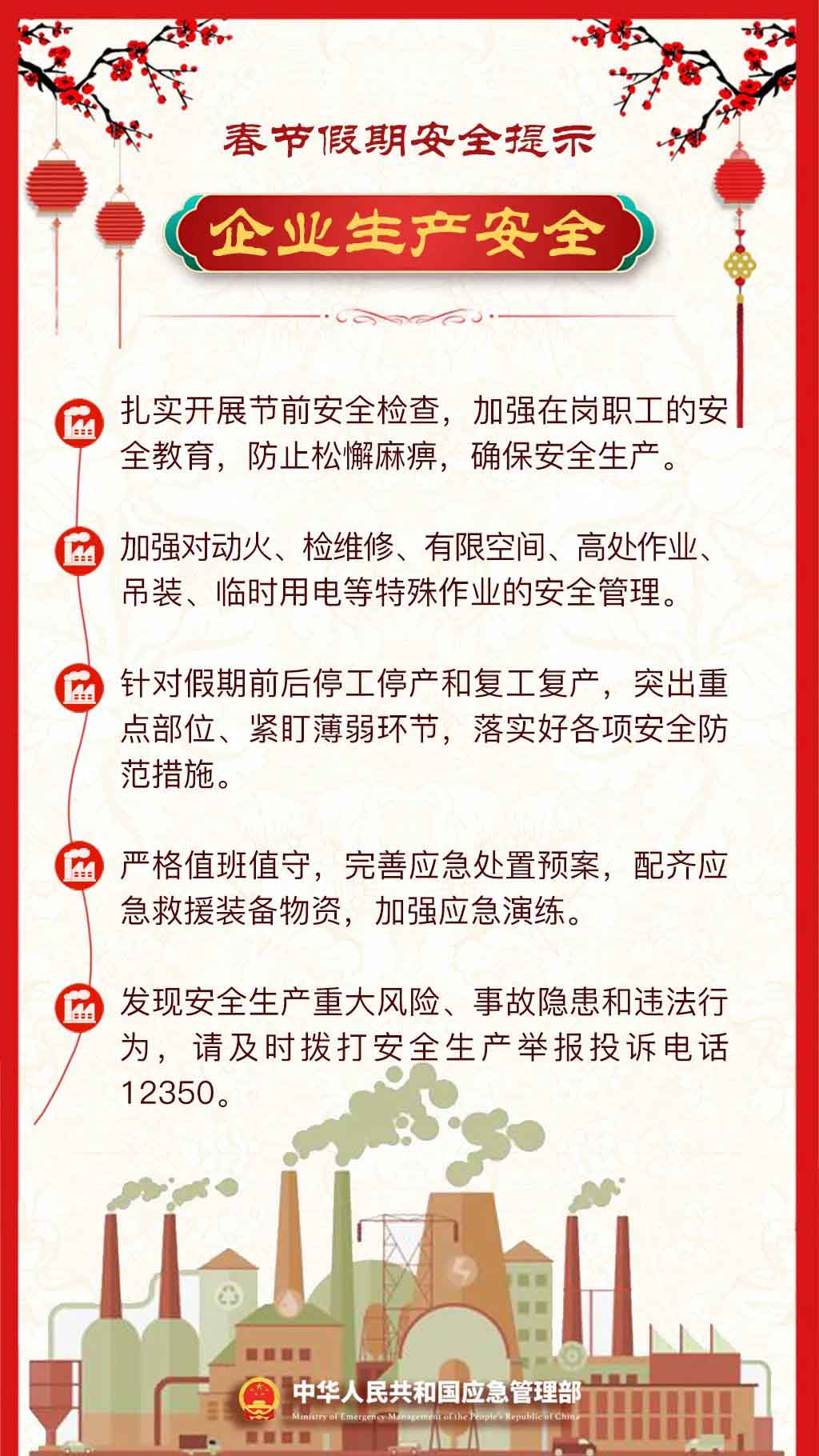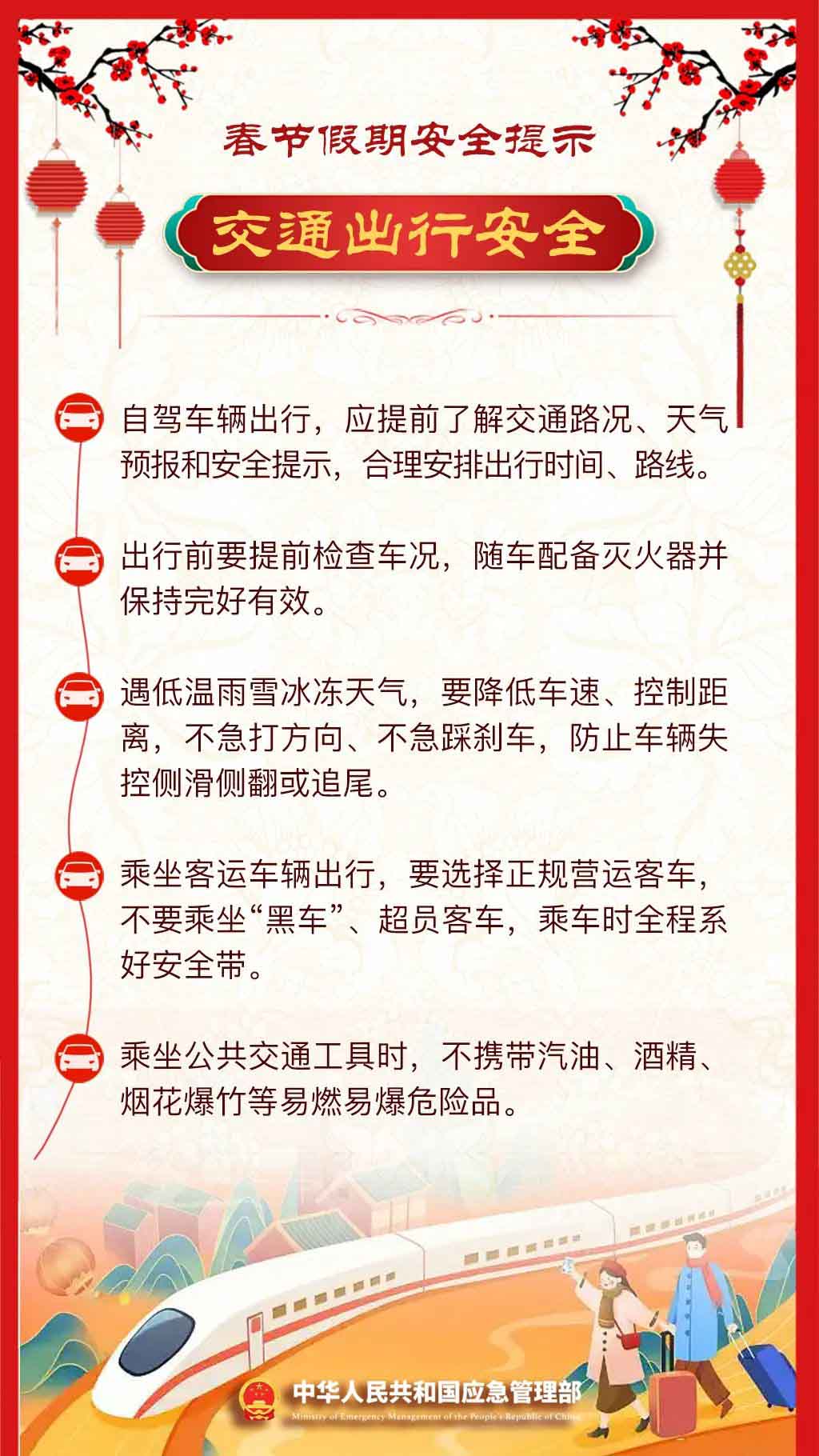 article------>{"id":6538,"cid":7,"subCid":null,"title":"2025年春節(jié)假期安全提示","shortTitle":"","tagId":"","attr":"","articleView":"","source":"","author":"","description":"春節(jié)假期將至\n家庭用火用氣用電增加\n自駕出行、客貨運(yùn)輸增多\n燈會(huì)、廟會(huì)、促銷慶典等大型活動(dòng)多\n賓館飯店客流劇增\n煤炭等企業(yè)保供壓力加大\n疊加低溫雨雪天氣\n各類安全風(fēng)險(xiǎn)增加\n這份春節(jié)假期安全提示\n請(qǐng)查收!\n↓↓↓\n\n\n\n\n\n\n\n\n\n\n\n\n\n\n\n\n 來源:中國(guó)應(yīng)急管理報(bào)融媒體工作部制作...","img":"/public/uploads/default/2025/01/26/1737865526081_source_安全提示.jpg","content":"<p style=\"text-align: center;\" data-mpa-powered-by=\"yiban.io\"><span style=\"font-size: 20px;\">春節(jié)假期將至</span></p>\n<p style=\"text-align: center;\"><span style=\"font-size: 20px;\">家庭用火用氣用電增加</span></p>\n<p style=\"text-align: center;\"><span style=\"font-size: 20px;\">自駕出行、客貨運(yùn)輸增多</span></p>\n<p style=\"text-align: center;\"><span style=\"font-size: 20px;\">燈會(huì)、廟會(huì)、促銷慶典等大型活動(dòng)多</span></p>\n<p style=\"text-align: center;\"><span style=\"font-size: 20px;\">賓館飯店客流劇增</span></p>\n<p style=\"text-align: center;\"><span style=\"font-size: 20px;\">煤炭等企業(yè)保供壓力加大</span></p>\n<p style=\"text-align: center;\"><span style=\"font-size: 20px;\">疊加低溫雨雪天氣</span></p>\n<p style=\"text-align: center;\"><span style=\"font-size: 20px;\">各類安全風(fēng)險(xiǎn)增加</span></p>\n<p style=\"text-align: center;\"><span style=\"font-size: 20px;\">這份春節(jié)假期安全提示</span></p>\n<p style=\"text-align: center;\"><span style=\"font-size: 20px;\">請(qǐng)查收!</span></p>\n<p style=\"text-align: center;\"><span style=\"font-size: 20px;\">↓↓↓</span></p>\n<p style=\"text-align: center;\"><img src=\"/public/uploads/default/2025/01/26/1737865982024_source_mceu_69331620331737865968774.jpg\"></p>\n<p style=\"text-align: center;\"><img src=\"/public/uploads/default/2025/01/26/1737865989086_source_mceu_8433769041737865976979.jpg\"></p>\n<p style=\"text-align: center;\"><img src=\"/public/uploads/default/2025/01/26/1737866000161_source_mceu_40644646551737865988059.jpg\"></p>\n<p style=\"text-align: center;\"><img src=\"/public/uploads/default/2025/01/26/1737866009174_source_mceu_20799012461737865997071.jpg\"></p>\n<p style=\"text-align: center;\"><img src=\"/public/uploads/default/2025/01/26/1737866018134_source_mceu_29649665571737866006031.jpg\"></p>\n<p style=\"text-align: center;\"><img src=\"/public/uploads/default/2025/01/26/1737866027890_source_mceu_70610935081737866015784.jpg\"></p>\n<p style=\"text-align: center;\"><img src=\"/public/uploads/default/2025/01/26/1737866038362_source_mceu_78041726991737866026260.jpg\"></p>\n<p style=\"text-align: center;\"><img src=\"/public/uploads/default/2025/01/26/1737866047119_source_mceu_946834890101737866035016.jpg\"></p>\n<p style=\"text-align: center;\"><img src=\"/public/uploads/default/2025/01/26/1737866056159_source_mceu_84389933111737866044057.jpg\"></p>\n<p style=\"text-align: center;\"><img src=\"/public/uploads/default/2025/01/26/1737866063042_source_mceu_407709761121737866050938.jpg\"></p>\n<p style=\"text-align: center;\"><img src=\"/public/uploads/default/2025/01/26/1737866070755_source_mceu_20174096131737866058651.jpg\"></p>\n<p> </p>\n<section>\n<section>\n<section>\n<section>\n<section> 來源:中國(guó)應(yīng)急管理報(bào)融媒體工作部制作</section>\n</section>\n</section>\n</section>\n</section>","orderBy":null,"status":0,"pv":529,"link":"","createdAt":"2025-01-26 12:24:50","updatedAt":"2025-10-20 12:59:47","department":null,"field":{},"tags":[]}