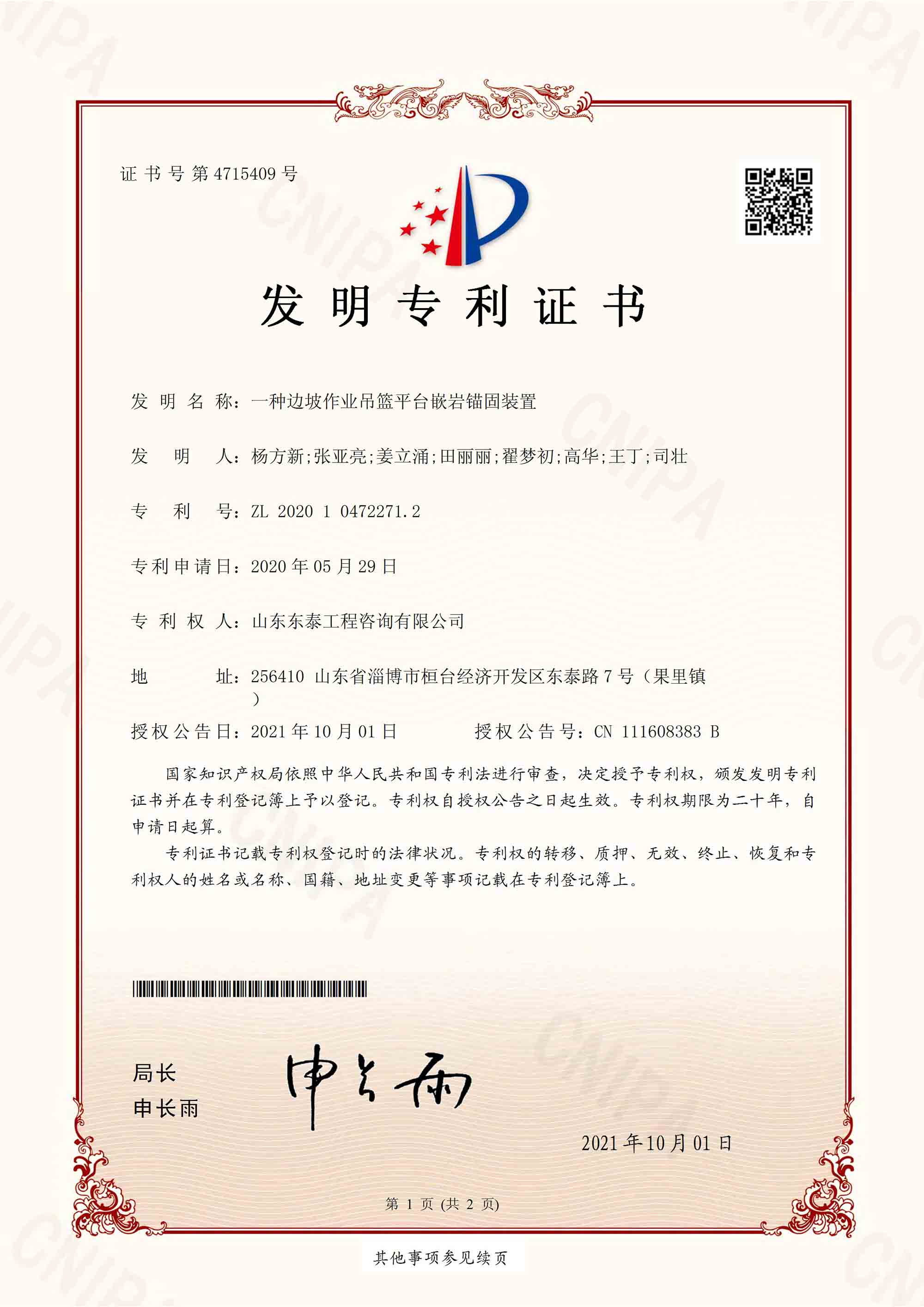 發(fā)明專利:一種邊坡作業(yè)吊籃平臺嵌巖錨固裝置