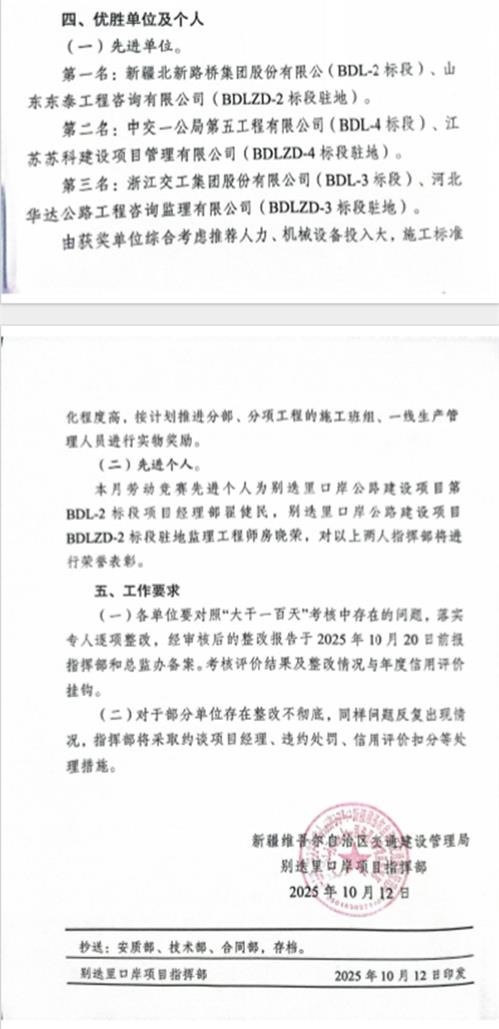 article------>{"id":7101,"cid":20,"subCid":null,"title":"勇奪桂冠展實(shí)力,奮楫爭先譜新篇 ——東泰咨詢新疆別迭里項(xiàng)目駐地辦在別迭里口岸公路建設(shè)項(xiàng)目“大干100天”第二次專項(xiàng)檢查中榮獲第一","shortTitle":"","tagId":"","attr":"","articleView":"","source":"三公司","author":"時(shí)培珍","description":"戰(zhàn)鼓催征馬蹄疾,攻堅(jiān)克難捷報(bào)傳!新疆別迭里口岸公路建設(shè)項(xiàng)目如火如荼的大干100天全力沖刺加速完成全年目標(biāo)任務(wù)勞動(dòng)競賽熱潮中,山東東泰工程咨詢有限公司三公司承監(jiān)的BDL-2標(biāo)段再次以卓越表現(xiàn)贏得高度認(rèn)可。在指揮部聯(lián)合總監(jiān)辦大干一百天開展的第二次專項(xiàng)檢查中,東泰咨詢新疆別迭里項(xiàng)目駐地辦憑借過硬的綜合實(shí)力、精細(xì)化的項(xiàng)目管理以及全體監(jiān)理人員的奮勇拼搏,在激烈的競賽角逐中脫穎而出,榮膺綜合評(píng)比第一名!\n此次...","img":"","content":"<p class=\"p\" align=\"justify\"><span style=\"font-size: 18px; font-family: arial, helvetica, sans-serif;\">戰(zhàn)鼓催征馬蹄疾,攻堅(jiān)克難捷報(bào)傳!新疆別迭里口岸公路建設(shè)項(xiàng)目如火如荼的“大干100天全力沖刺加速完成全年目標(biāo)任務(wù)”勞動(dòng)競賽熱潮中,山東東泰工程咨詢有限公司三公司承監(jiān)的BDL-2標(biāo)段再次以卓越表現(xiàn)贏得高度認(rèn)可。在指揮部聯(lián)合總監(jiān)辦“大干一百天”開展的第二次專項(xiàng)檢查中,東泰咨詢新疆別迭里項(xiàng)目駐地辦憑借過硬的綜合實(shí)力、精細(xì)化的項(xiàng)目管理以及全體監(jiān)理人員的奮勇拼搏,在激烈的競賽角逐中脫穎而出,榮膺綜合評(píng)比第一名!</span></p>\n<p class=\"p\" align=\"justify\"><span style=\"font-size: 18px; font-family: arial, helvetica, sans-serif;\">此次專項(xiàng)檢查,是深入貫徹落實(shí)上級(jí)交通建設(shè)事務(wù)中心部署要求、全面檢驗(yàn)各參建單位“大干100天”階段性成效的關(guān)鍵舉措。檢查組圍繞工程質(zhì)量、安全生產(chǎn)、施工進(jìn)度、合同履約、文明施工、生態(tài)環(huán)保等核心要素,通過深入現(xiàn)場實(shí)地查看、查閱內(nèi)業(yè)資料、聽取工作匯報(bào)等多種形式,對(duì)各施工單位進(jìn)行了全面、系統(tǒng)、嚴(yán)格的考核評(píng)估。</span></p>\n<p class=\"p\" align=\"justify\"><span style=\"font-size: 18px; font-family: arial, helvetica, sans-serif;\">面對(duì)高標(biāo)準(zhǔn)、嚴(yán)要求的檢查,東泰咨詢新疆別迭里項(xiàng)目駐地辦全體監(jiān)理人員充分發(fā)揚(yáng)“特別能吃苦、特別能戰(zhàn)斗、特別能奉獻(xiàn)”的鐵軍精神,從四個(gè)方面將競賽壓力轉(zhuǎn)化為強(qiáng)大動(dòng)力。一是工程質(zhì)量鑄就“精品名片”。堅(jiān)持“質(zhì)量第一,精益求精”理念,嚴(yán)格過程管控,強(qiáng)化首件認(rèn)可,狠抓標(biāo)準(zhǔn)化施工,各項(xiàng)實(shí)體工程內(nèi)實(shí)外美,獲得檢查組高度評(píng)價(jià)。二是安全生產(chǎn)筑牢“銅墻鐵壁”。牢固樹立“紅線意識(shí)”和“底線思維”,全面落實(shí)安全生產(chǎn)責(zé)任制,加強(qiáng)風(fēng)險(xiǎn)隱患排查治理,施工現(xiàn)場安全防護(hù)到位、管理有序,實(shí)現(xiàn)了“零事故”目標(biāo)。三是工程進(jìn)度跑出“別迭里速度”。督促項(xiàng)目部科學(xué)組織,優(yōu)化方案,加大資源投入,克服復(fù)雜地質(zhì)條件等困難,關(guān)鍵節(jié)點(diǎn)目標(biāo)超前完成,形象進(jìn)度在全線持續(xù)領(lǐng)跑,充分展現(xiàn)了高效的管理能力。四是管理創(chuàng)新打造“智慧工地”。積極應(yīng)用信息化管理手段,提升管理效能。合同管理規(guī)范嚴(yán)謹(jǐn),農(nóng)民工工資支付保障有力,環(huán)保措施落實(shí)到位,文明施工規(guī)范有序,體現(xiàn)了現(xiàn)代化的項(xiàng)目管理水平。</span></p>\n<p class=\"p\" align=\"justify\"><span style=\"font-size: 18px; font-family: arial, helvetica, sans-serif;\">百尺竿頭思更進(jìn),策馬揚(yáng)鞭再奮蹄。當(dāng)前,別迭里口岸公路項(xiàng)目建設(shè)已進(jìn)入全年目標(biāo)任務(wù)沖刺的決勝階段。此次榮獲第一,既是鼓舞,更是鞭策。東泰咨詢新疆別迭里項(xiàng)目駐地辦將倍加珍惜榮譽(yù),戒驕戒躁,以此次專項(xiàng)檢查取得佳績?yōu)樾缕瘘c(diǎn),緊盯剩余目標(biāo)任務(wù),進(jìn)一步凝聚力量、鼓舞士氣、優(yōu)化方案、強(qiáng)化執(zhí)行。</span></p>\n<p class=\"p\" align=\"justify\"><span style=\"font-size: 18px; font-family: arial, helvetica, sans-serif;\"><img src=\"/public/uploads/default/2025/10/15/1760509027831_source_1.jpg\" alt=\"\" width=\"500\" height=\"550\" style=\"display: block; margin-left: auto; margin-right: auto;\"></span></p>\n<p class=\"p\" align=\"justify\"><span style=\"font-size: 18px; font-family: arial, helvetica, sans-serif;\"><img src=\"/public/uploads/default/2025/10/15/1760509104536_source_2(1).jpg\" alt=\"\" width=\"499\" height=\"1029\" style=\"display: block; margin-left: auto; margin-right: auto;\"></span></p>\n<p class=\"p\" align=\"justify\"> </p>\n<p class=\"p\" align=\"justify\"> </p>\n<p class=\"MsoNormal\"> </p>","orderBy":null,"status":0,"pv":53,"link":"","createdAt":"2025-10-15 14:11:42","updatedAt":"2025-10-20 01:58:27","department":"三公司","field":{},"tags":[]}